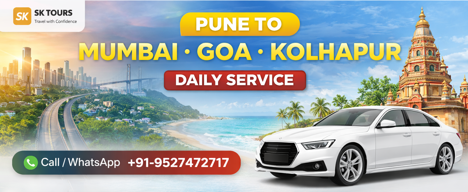 SK TOURS is a trusted taxi service in Pune providing safe, clean and affordable cab services for airport transfers, local city travel and outstation trips. We focus on customer comfort, punctuality and professional service.